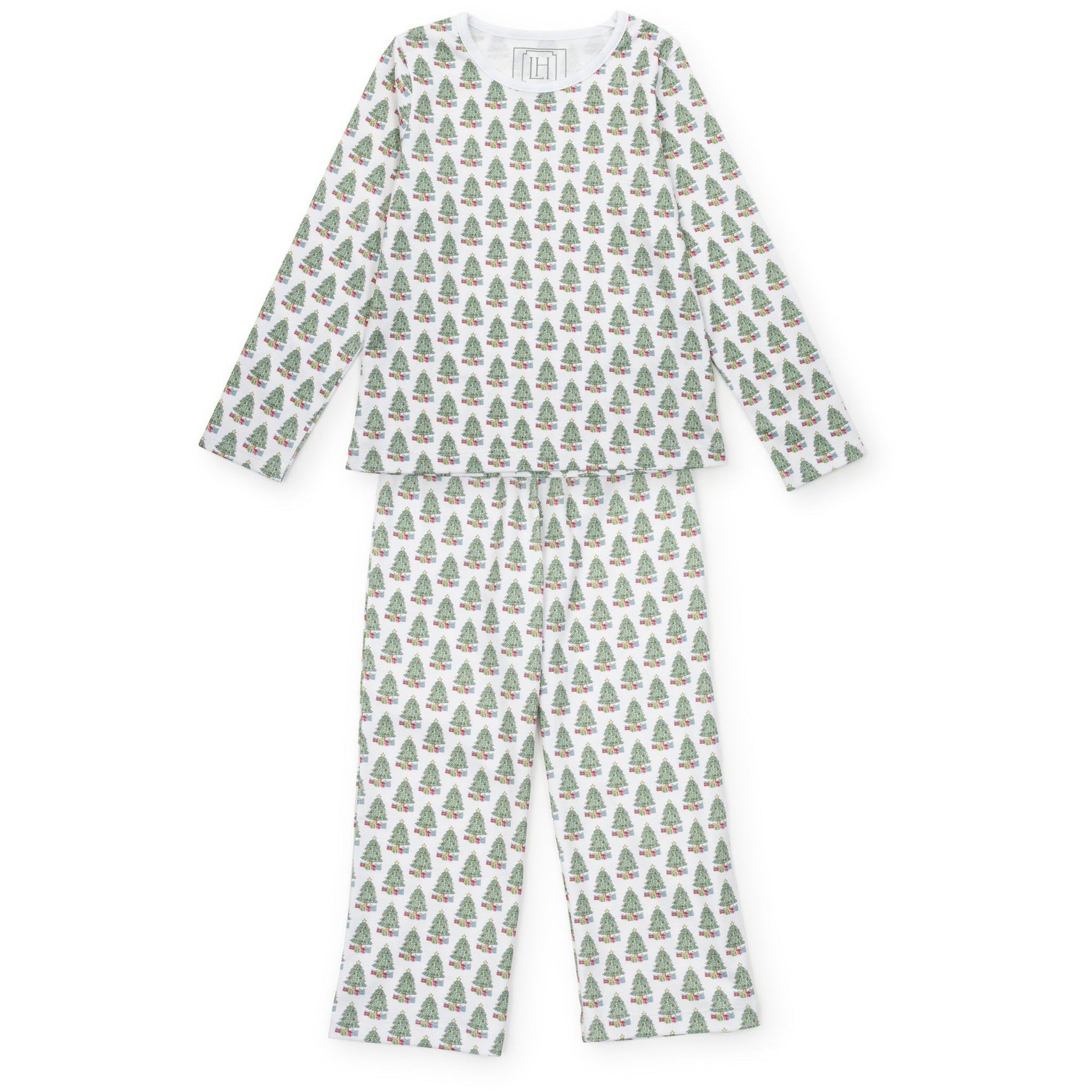 PIMA COTTON LONG SLEEVED TOP AND PANT SET. TOP HAS WHITE PIPING DETAIL AROUND THE NECK AND PANTS HAVE AN ELASTIC WAISTBAND.
