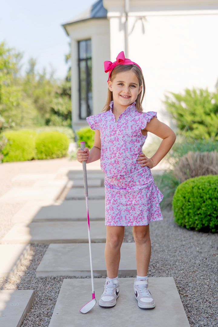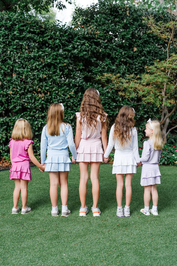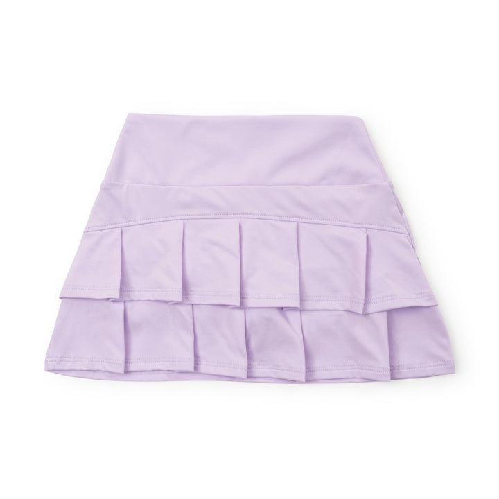 Girls' tiered performance skirt with built in shorts. Made from 92% polyester, 8% Elastane. Moisture-wicking and quick-drying.