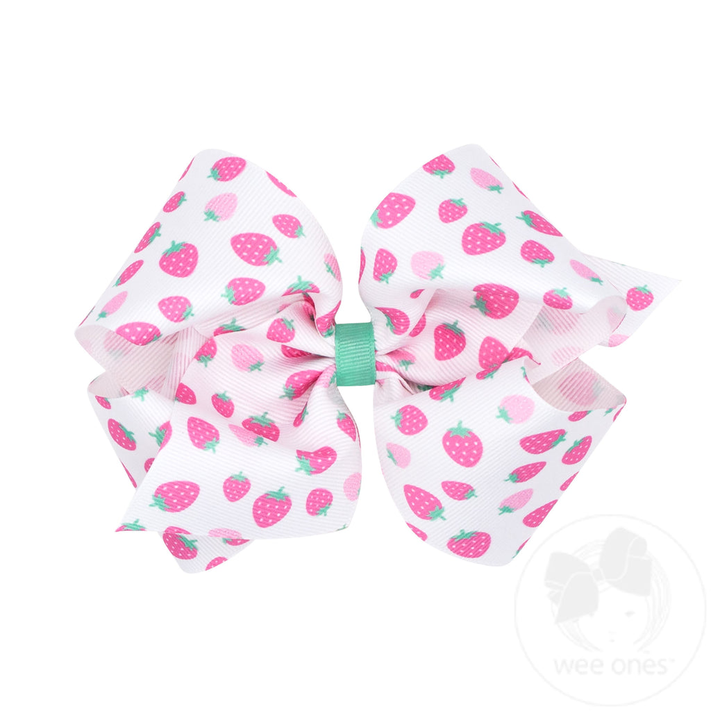 Strawberry Print Grosgrain Hair Bow