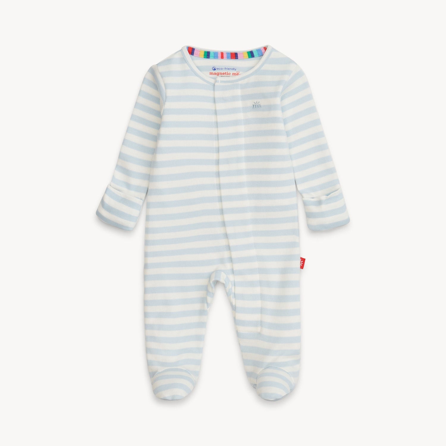 Our organic cotton Magnetic Footie, designed with magnetic closures, is a quick and quiet lifesaver for all-day and middle-of-the-night diaper changes—that's up to 12 times a day (!). Made from GOTS certified organic cotton, this sleeper is so soft, breathable, and gentle on sensitive skin.