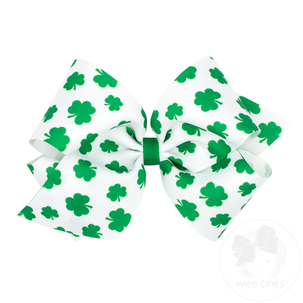 King White Shamrock Printed Grosgrain Hair Bow